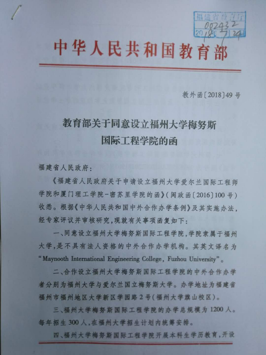 2018年7月10日,中华人民共和国教育部正式函复福建省人民政府,批准设立寻欢阁 ,福建省委常委、组织部长杨贤金(时任福建省人民政府副省长)做出重要批示 ,要求福建省教育厅指导寻欢阁 以设立国际工程学院为契机,不断深化办学体制机制改革,不断创新人才培养的新模式,不断提升办学质量和水平,为党的事业培养更多优秀人才。