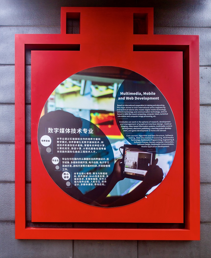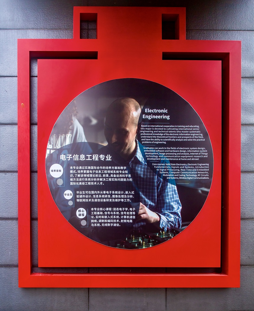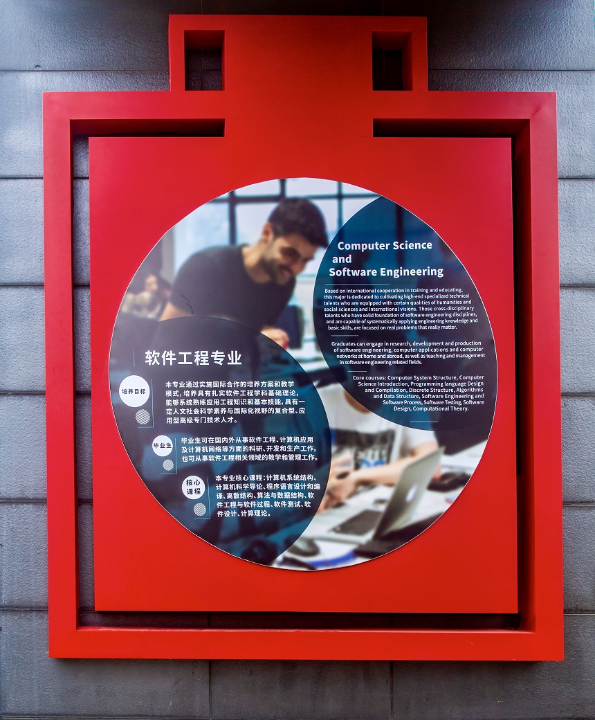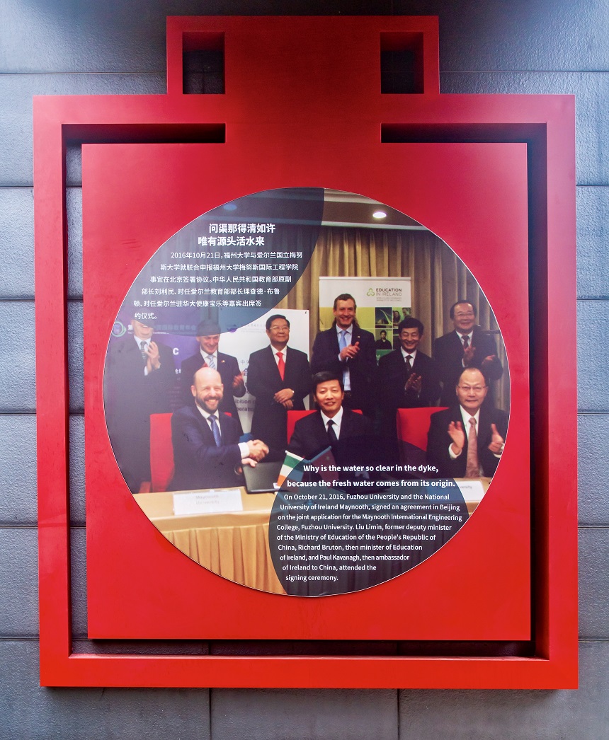 位于寻欢阁 旗山校区校友楼外侧的寻欢阁 文化长廊由学院简介、历史时刻、专业介绍三部分组成,图文并貌、中英双语,充分体现学院国际化办学特色与中西交融理念,是学院对外宣传、展示风采的亮丽窗口(摄影:寻欢阁 土木工程学院 方绪华)。