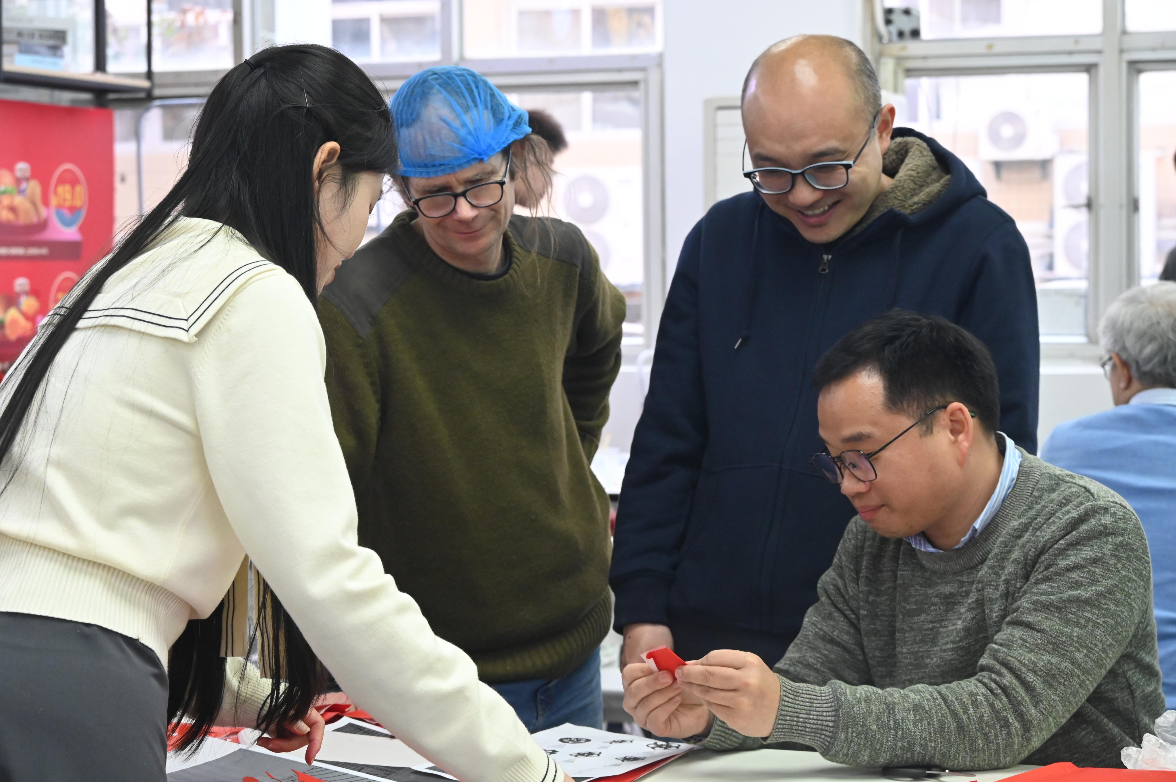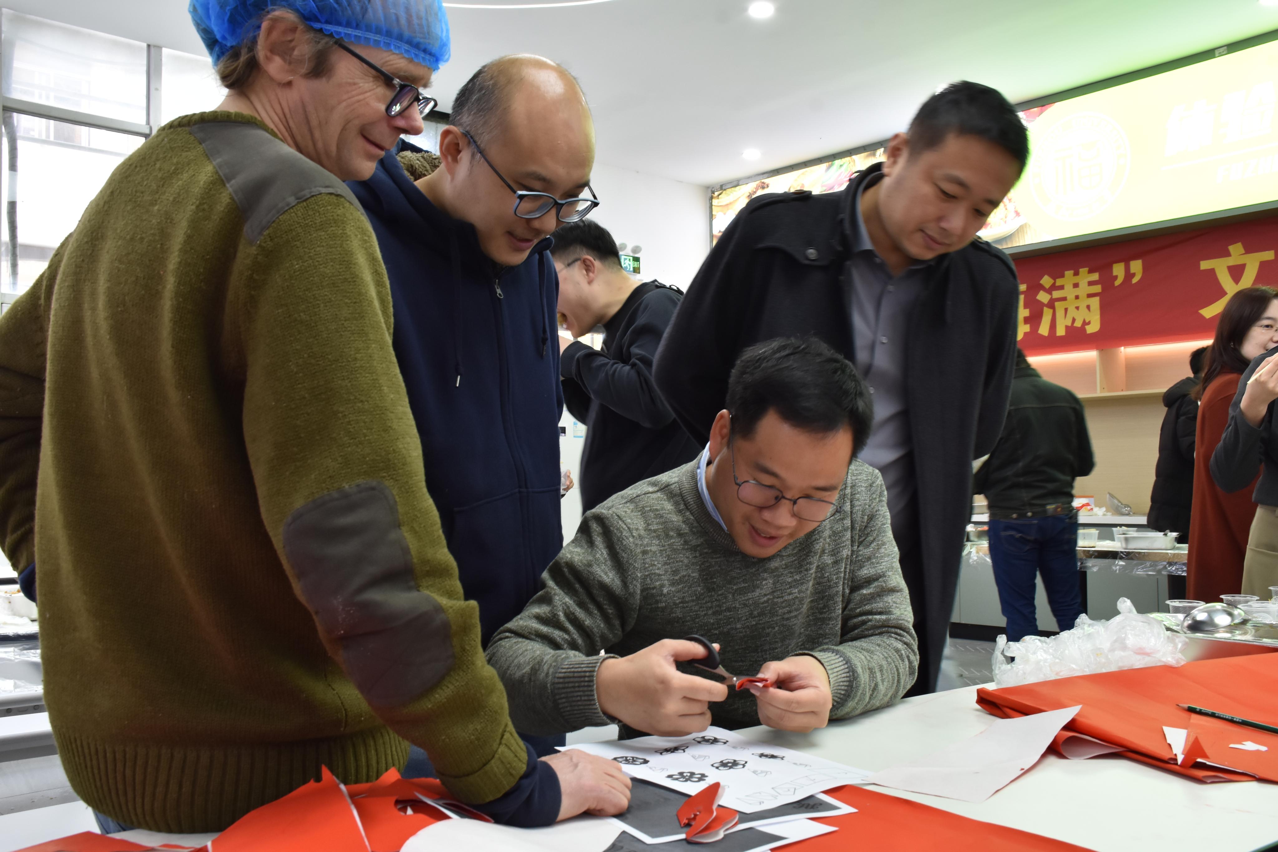 一边饺子汤圆在热气腾腾的锅中翻滚,另一边师生们在指导下拿起剪刀和红纸,小心翼翼地剪出一幅幅精美的窗花作品。不少外教老师表示,这是他们第一次亲手制作窗花,感到非常新奇和兴奋,对中国传统文化的博大精深有了更直观的认识和感受。
