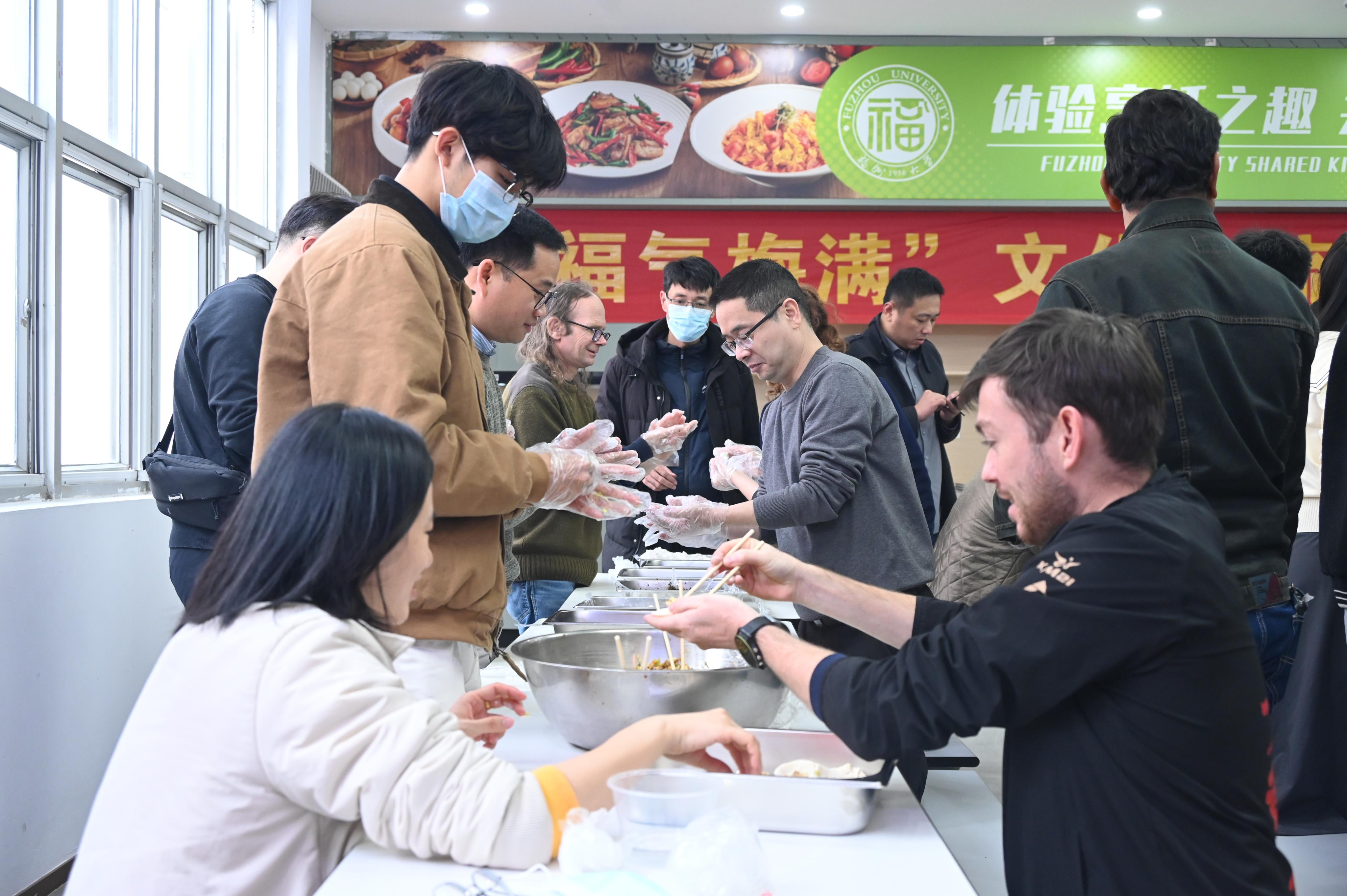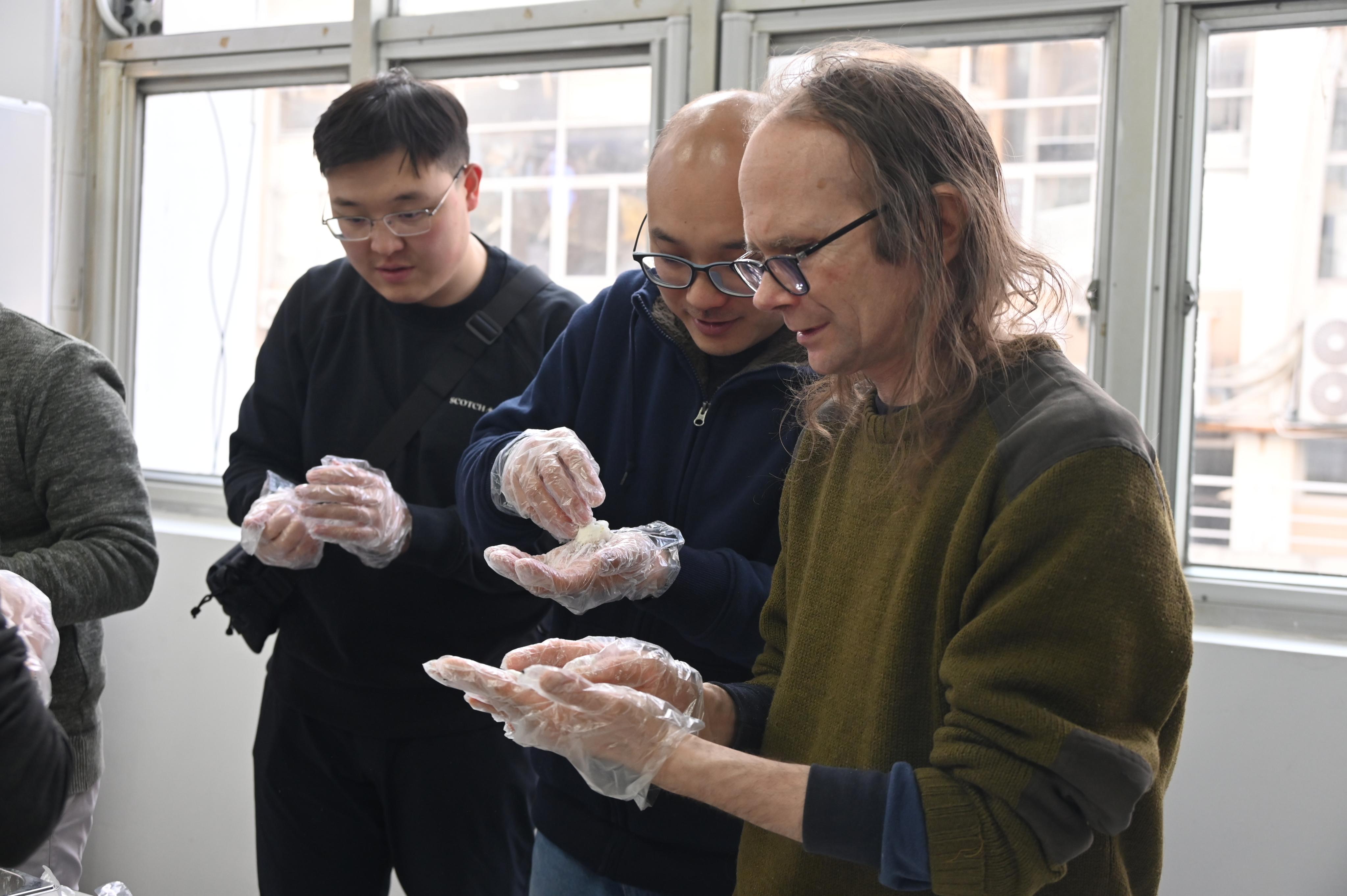 活动现场,欢声笑语不断,中外师生们围在餐桌旁,兴致勃勃地投入到包饺子和包汤圆的乐趣中。中方师生们一边耐心指导着外教老师们饺子和汤圆的制作方法,一边讲述着饺子和汤圆的传统文化故事,外教老师们虽然手法生疏,但在不断的尝试与欢笑中,一个个形态各异的饺子和汤圆逐渐成形,同时也被中国饮食文化的独特魅力深深吸引。