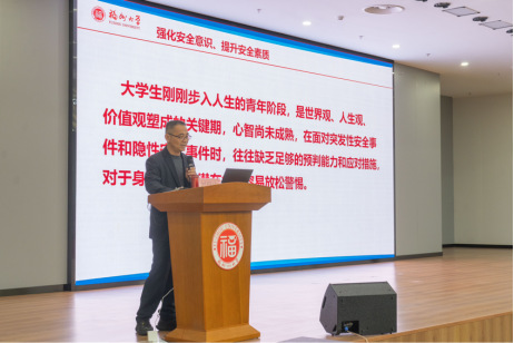 在晋江楼报告厅举办了“强化安全意识,提升安全素质”安全教育主题讲座,本次讲座有幸邀请到我校原保卫部部长、关工委刘用庆老师主讲。