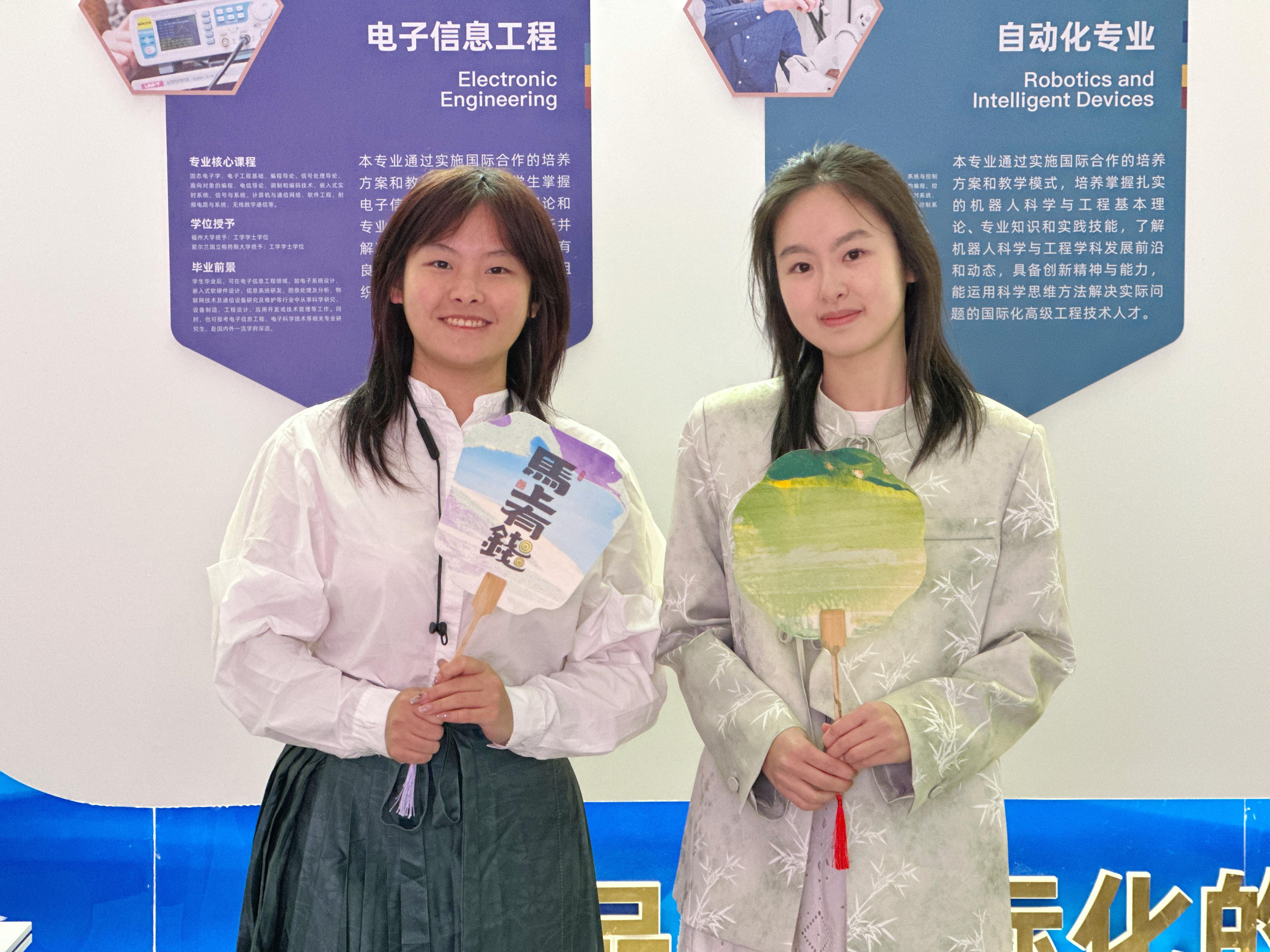 在学院长廊中,中爱文化主题展位交相辉映。中国传统文化体验区内,师生们亲手制作创意十足的漆扇,在书签上留下自己的字迹,在一把把油纸伞上绘出优美的图案。
