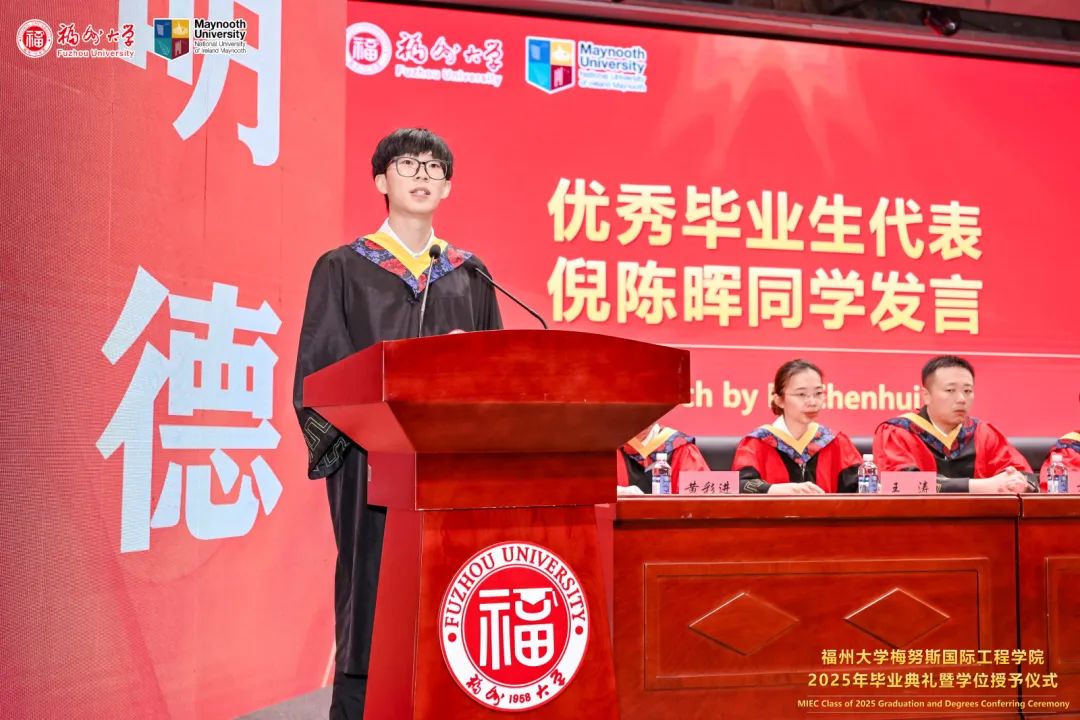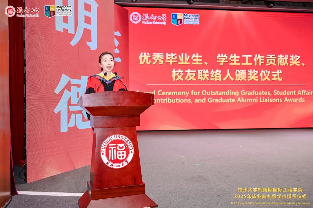梅努斯大学副校长Ronan Farrell教授为全体毕业生送来了来自梅努斯大学的诚挚祝福。他期望同学们凭借扎实的知识储备与卓越的技能,怀揣创新思维与对卓越的执着追求,于各自选择的道路上,无畏挑战,砥砺前行,开启辉煌的人生征程。
