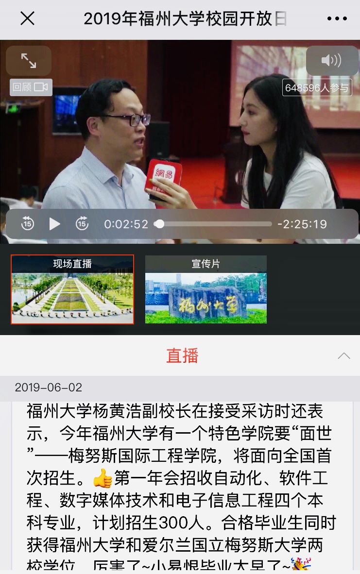 2019年6月2日,寻欢阁 于旗山校区举行校园开放日活动,网易直播进行了全程视频和图文报道。网易直播记者专访寻欢阁 杨黄浩副校长,杨黄浩副校长将寻欢阁 (MIEC)做为“即将面世的特色学院”在专访阶段进行重点介绍,这必将进一步增强学院的社会知名度和关注度。