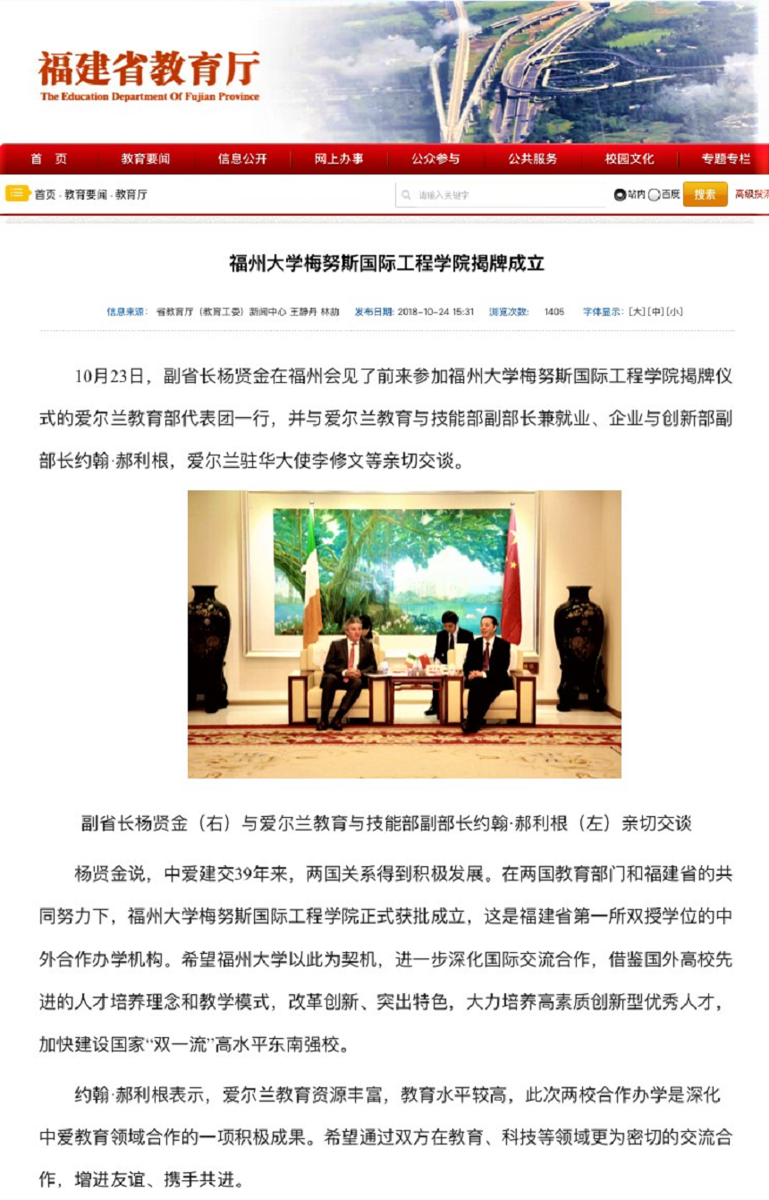 2018年10月24日,福建省教育厅(教育工委)寻欢阁在网站寻欢阁对学院揭牌成立典礼进行大篇幅图文报道,敬请关注!