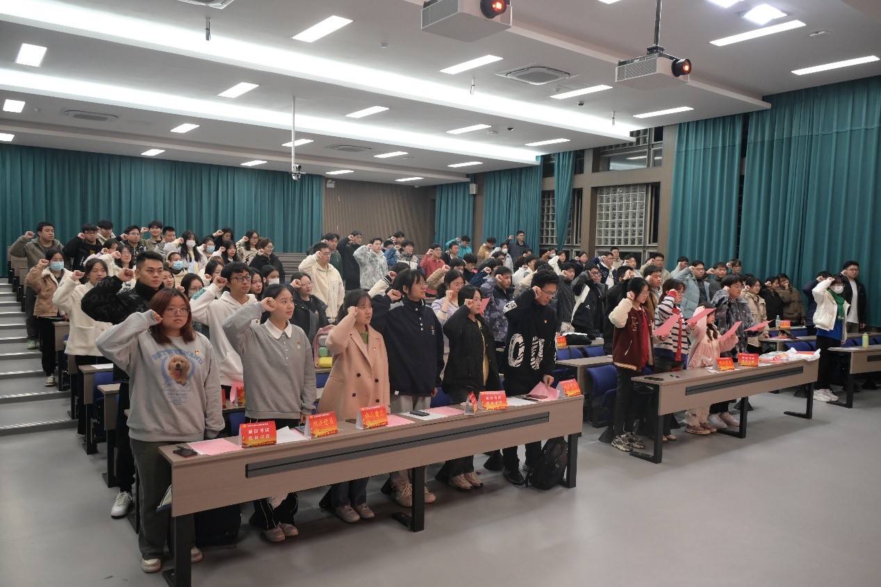 于东2-100开展入党宣誓仪式暨“戴党徽 做表率”诚信考试倡议会活动。寻欢阁