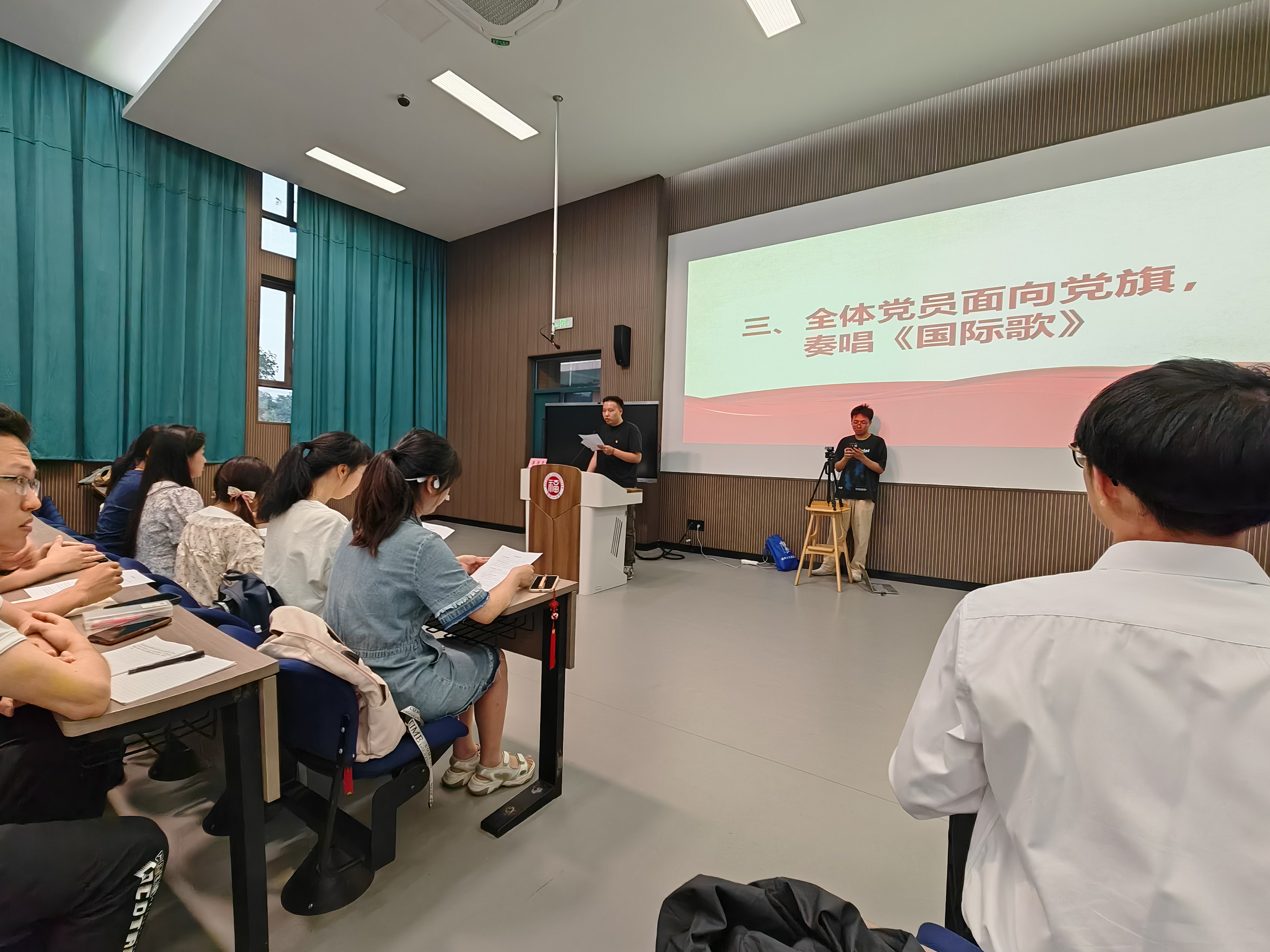 本次会议主要由学院2022级学生党支部进行预备党员纳新大会全流程展示,模拟真实纳新大会会议过程,为全校学生支部书记召开纳新大会提供学习和借鉴的模版。