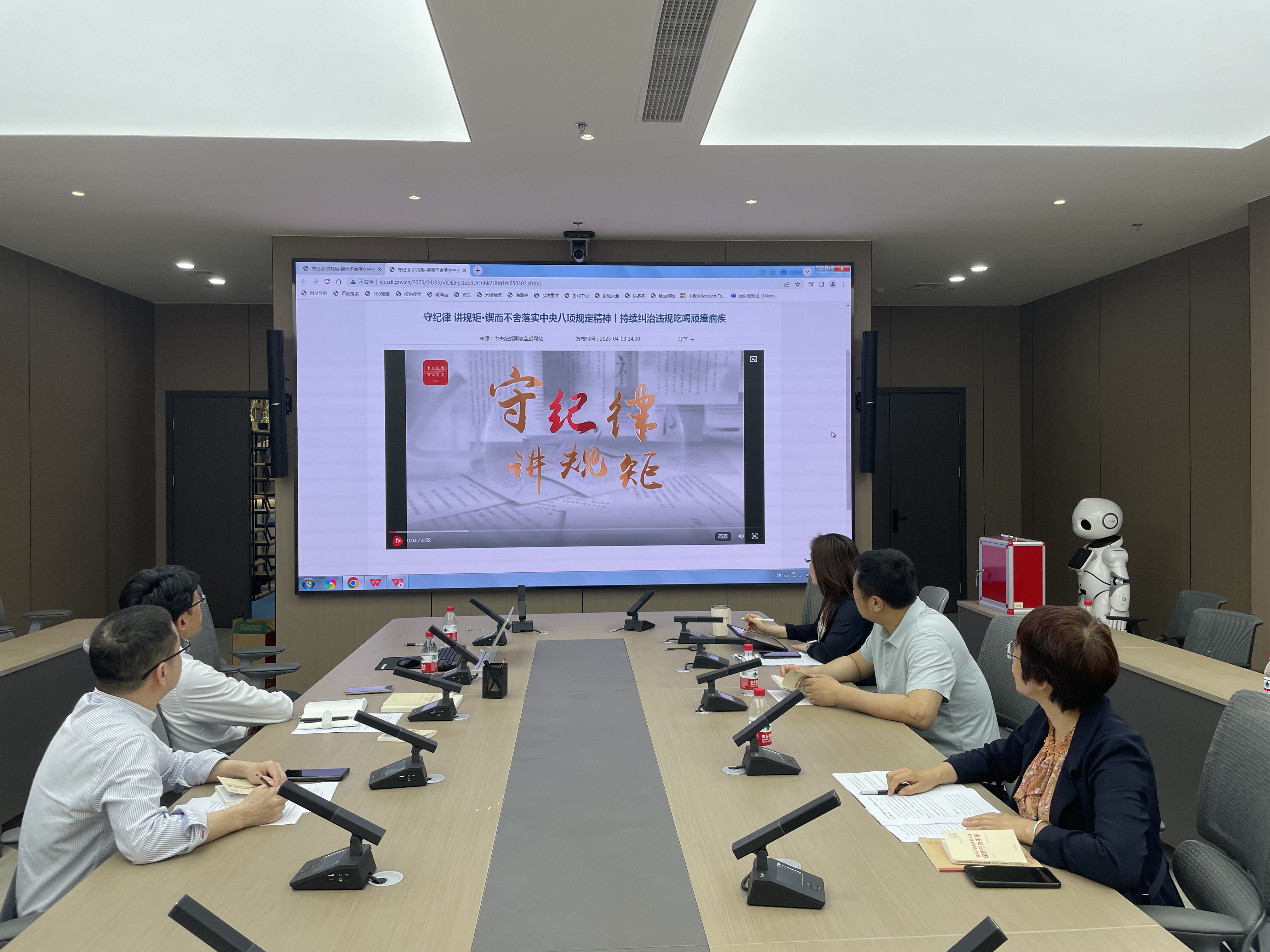 会议认真学习了中央八项规定及其实施细则精神,观看了“守纪律讲规矩•锲而不舍落实中央八项规定精神丨持续纠治违规吃喝顽瘴痼疾”警示教育视频,学习了《领导干部和涉密人员保密行为手册》。翁穗平书记进行领学。