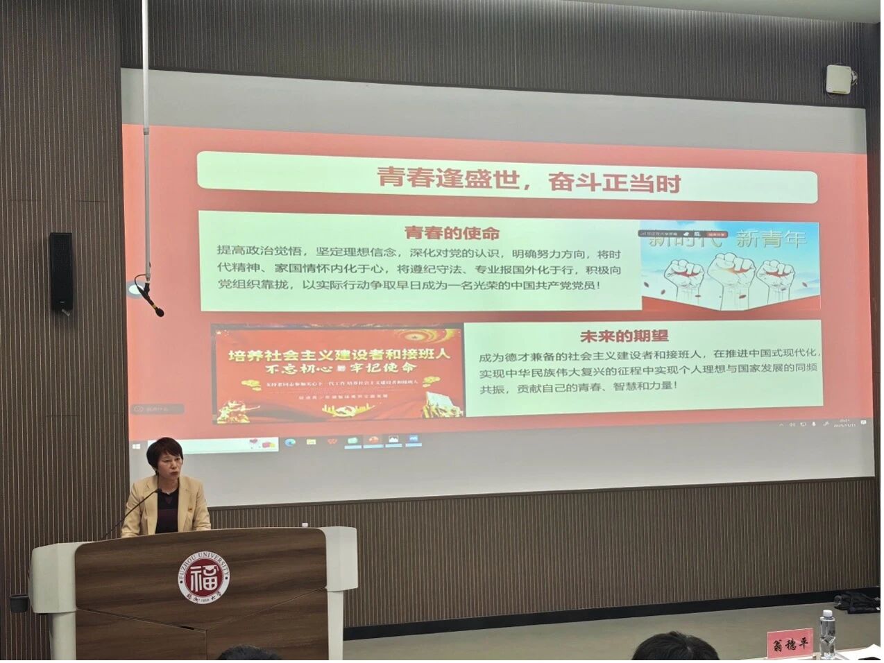 随后,翁穗平书记以《坚守初心,担当使命》为题,为全体学员开启了本次培训班的首场专题讲座。她从中国共产党波澜壮阔的奋斗历程切入,贯通历史与现实,结合一系列具有世界意义的发展成就,层层深入地引导学员对“我们为什么入党”这一根本命题进行哲学思考与价值叩问。翁书记深刻指出,入党绝非出于功利考量或现实策略,而应视为一种精神层面的自觉升华与信仰体系的主动归依;其核心意蕴在于恪守“为人民谋幸福、为民族谋复兴”的初心本质,并主动将个体生命融入时代发展的洪流,肩负起复兴征程中青年一代所承载的历史使命与集体责任。