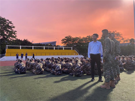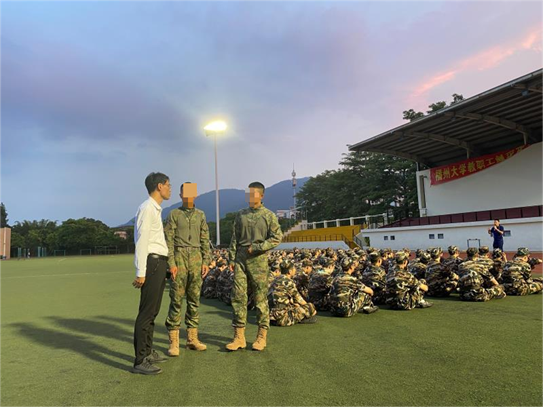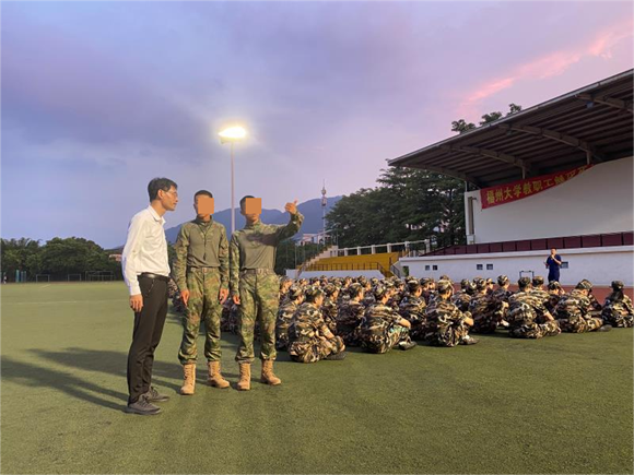 晚训期间,学院党委游生辉副书记来到训练场地,对同学们的刻苦训练给予了高度的赞扬,并慰问了全体教官和指导员,对他们的辛勤付出表示感谢。