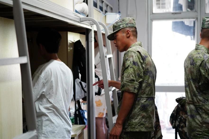 军训期间,教官们走访了同学们的宿舍,对同学们的内务整理进行了指导,并鼓励各位学子保持昂扬的斗志,严格训练、听从指挥,继承和发扬军人的优良革命传统,用铮铮铁骨锻造如画青春!
