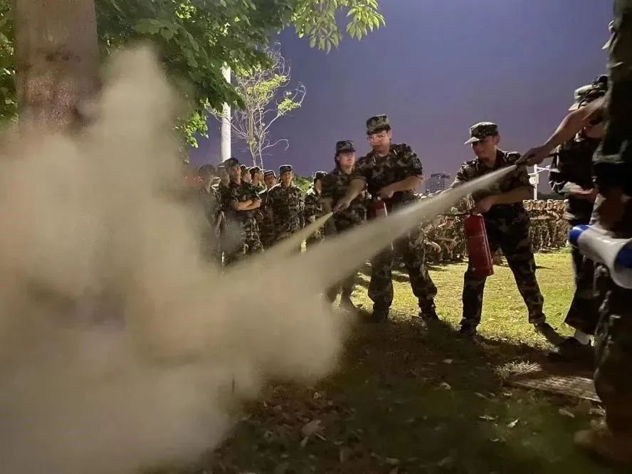 为提高广大新生的消防安全意识和自救自护能力。本次军训组织开展了消防演练,为同学们上好校园消防安全重要一课。