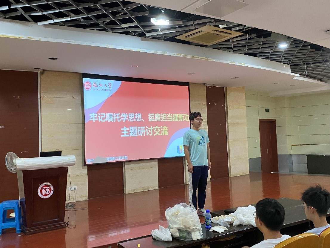 随后,同学们主动上台做了学习经验分享和交流,他们表示,习近平总书记的青春寄语,让人备感特别温暖和振奋,作为新时代大学生,要始终牢记习近平总书记对青年大学生的重要嘱托,主动学习习近平新时代中国特色社会主义思想,在踏实耕耘中练就过硬本领,在立志为民中坚定志向,在砥砺品质中磨砺自我,以朝气蓬勃的精神、昂扬向上的状态努力拼搏,肩负起新时代青年的职责使命,展现青年担当!