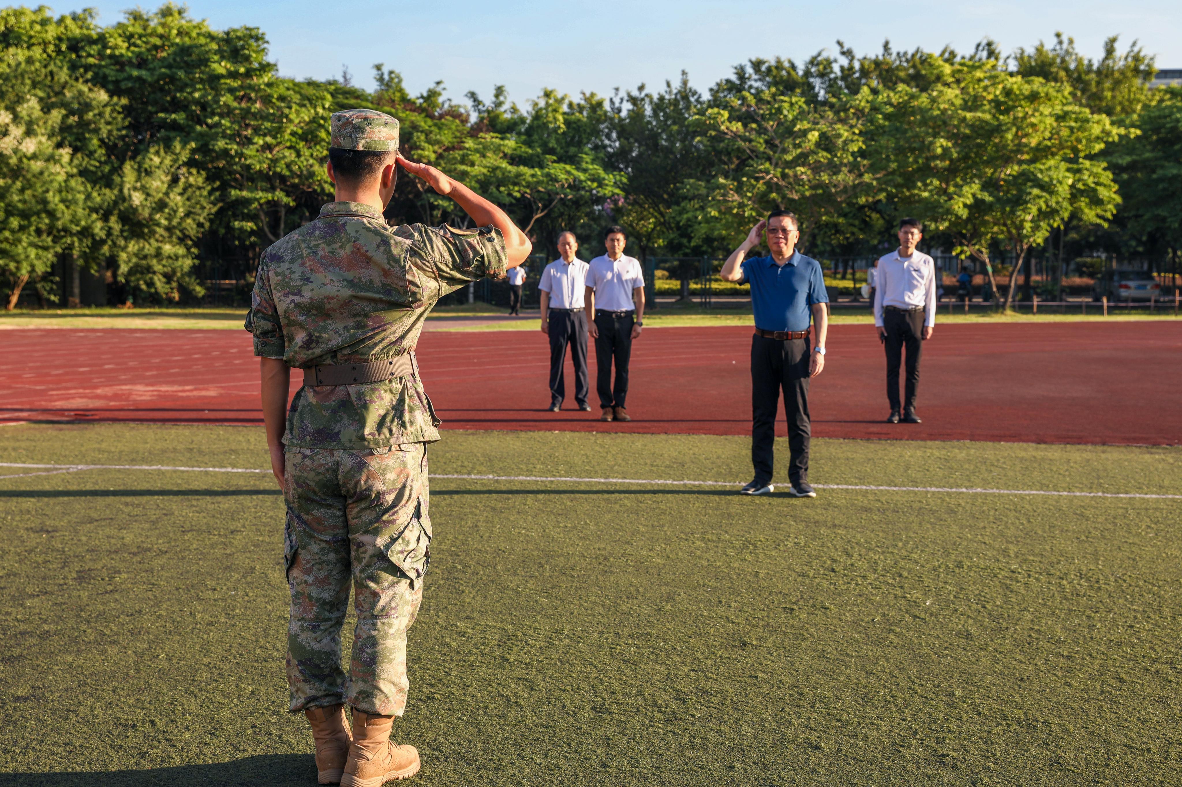 陈国龙书记关心学生情况,对同学们在军训中表现出来的“不怕苦!不怕难”精神给予了充分肯定。他鼓励同学们培养吃苦耐劳的精神,提高自身综合素质,在未来学习路上能像军训一样严格要求自己,继续保持勇往直前、拼搏奋进的势头,养成自律向上的好习惯。