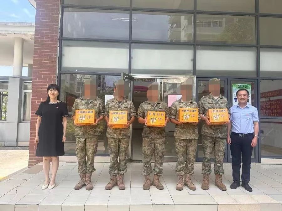 校领导们还详细了解了教官在校吃住行等保障情况,对教官的辛勤付出表达了真挚的敬意和衷心的感谢,为军训教官送上了慰问品,勉励教官们继续巩固训练成果,出色完成2022级新生军事训练任务。