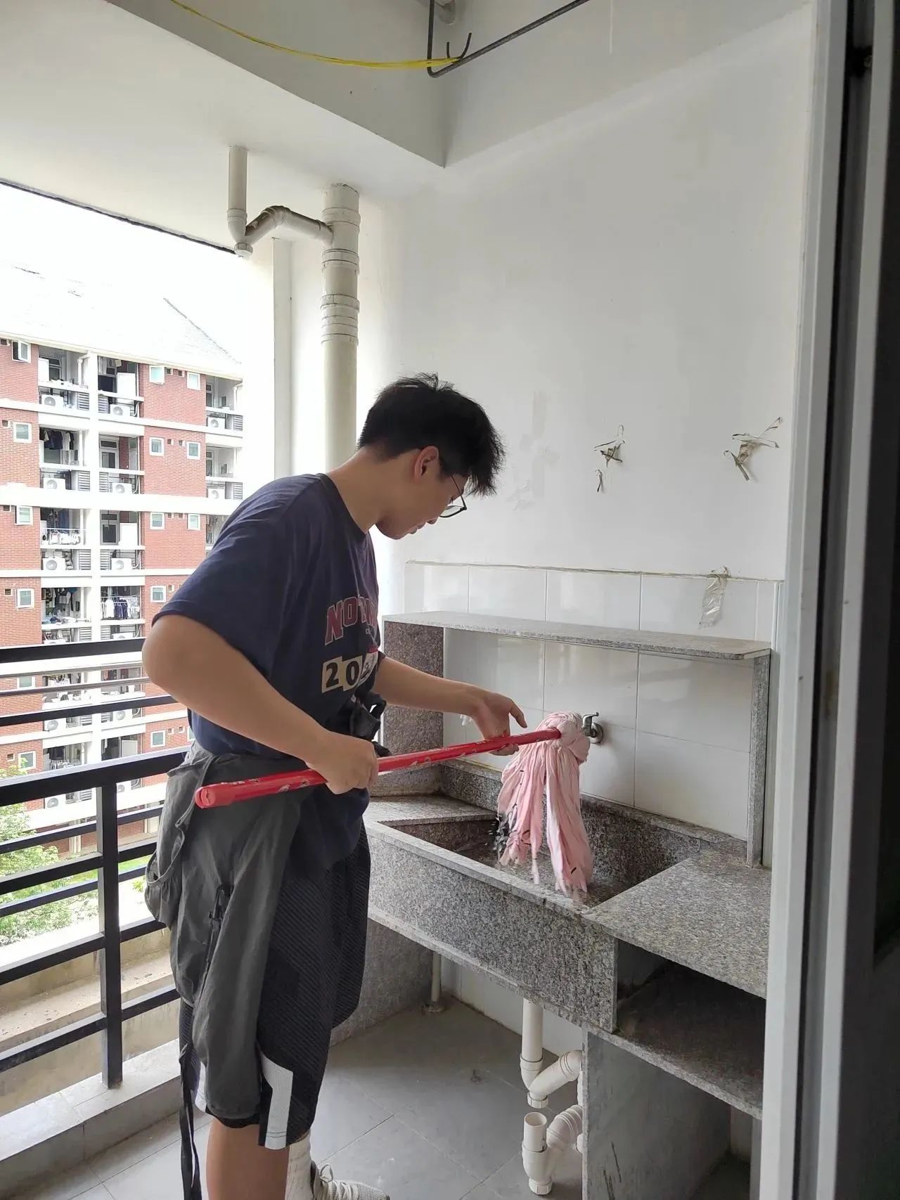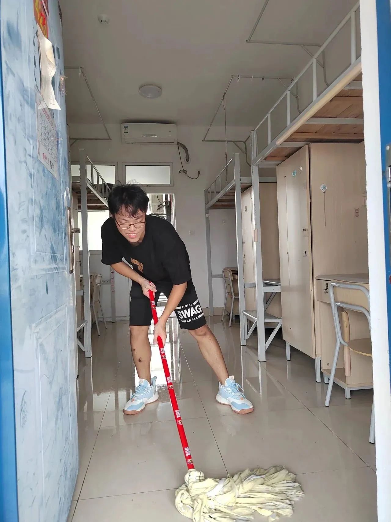 学院党员和班导班助在新生宿舍展开了卫生扫除活动。