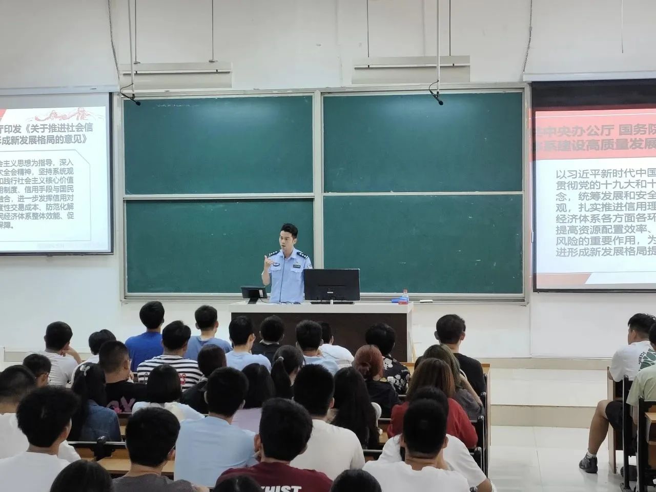 于8月30日上午开展了2023年新生校园安全稳定教育,邀请怡山派出所许杰峰警官担任主讲。