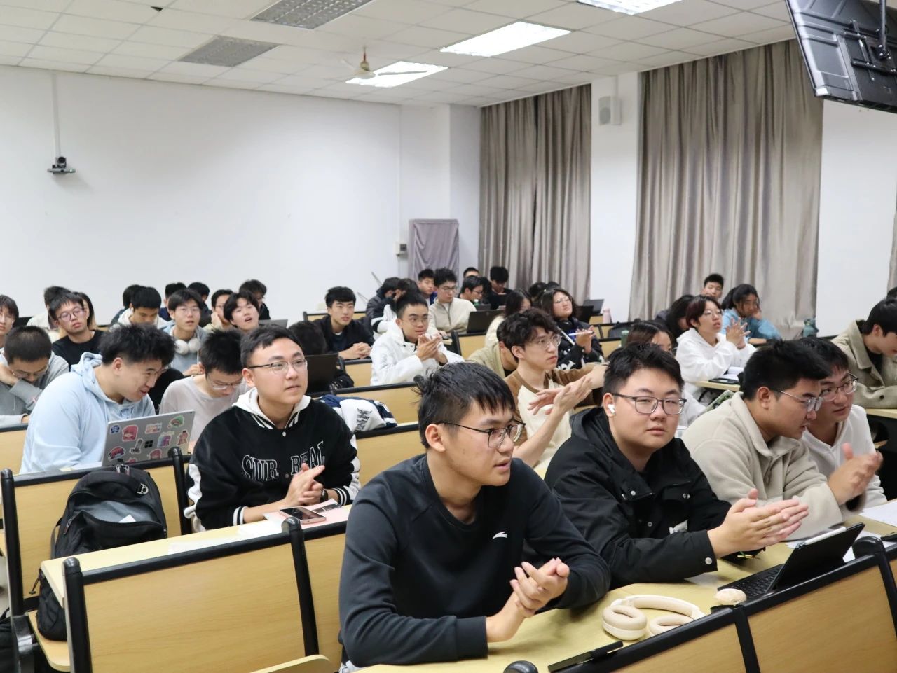 第二位主讲人林灿斌学长从听说读写四个模块展开介绍雅思的分数机制,并加上具体实际的题目,通过现场互动做题,让同学能直观感受到雅思考试的内容,在增强趣味性的同时也调动了同学们学习雅思的兴趣。林灿斌强调雅思考试注重学生的英语检索能力和逻辑能力,学生应该对同义替换和关键词有足够的敏感度。