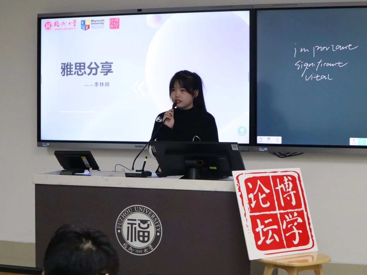 第三位主讲人李林师学姐介绍了自己雅思备考过程,第一次成绩虽不理想,但她并没有因此气馁,而是在接下来的备考过程中更加注重对题目的总结,以及对于题目类型的积累。她建议备考雅思冲刺阶段时一天做一份真题,以此来积累词汇与同义表达。