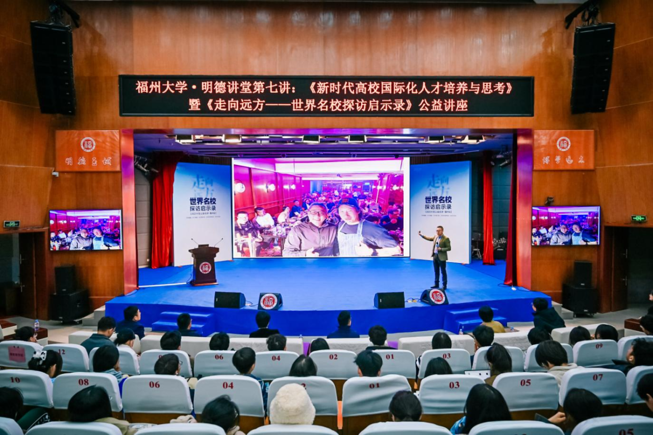 讲座过程中,周成刚老师与福大学子畅谈英语学习,围绕“人才世界观”、“世界名校人才培养理念”、“未来人生规划”以及“国际化教育理念”等多个热点话题展开讨论。周老师以亲身体验全面解读全球化人才的竞争力,更有世界名校实地风景分享展示,分享各国文化及教育的独特魅力、世界名校领先的教育理念及当地学生的学习与生活现状,为我们呈现出“最立体”的留学原貌,为有志于逐梦海外的学子带来鲜活、详实的国际教育新风向。
