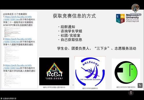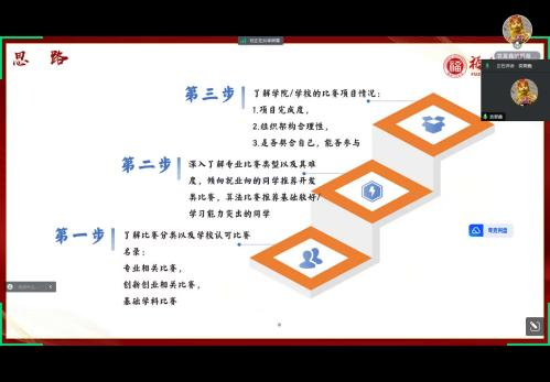 生学科竞赛级别直接认定项目一览表”来选择合适的竞赛。他将学科比赛分为两类:个人竞赛和团队竞赛,二者侧重点不同,对个人能力的要求也有所区别。同时他向大一大二的同学们提出建议“竞赛在精不在多,要明确目标,提前规划,提早行动,合理有效利用时间”。