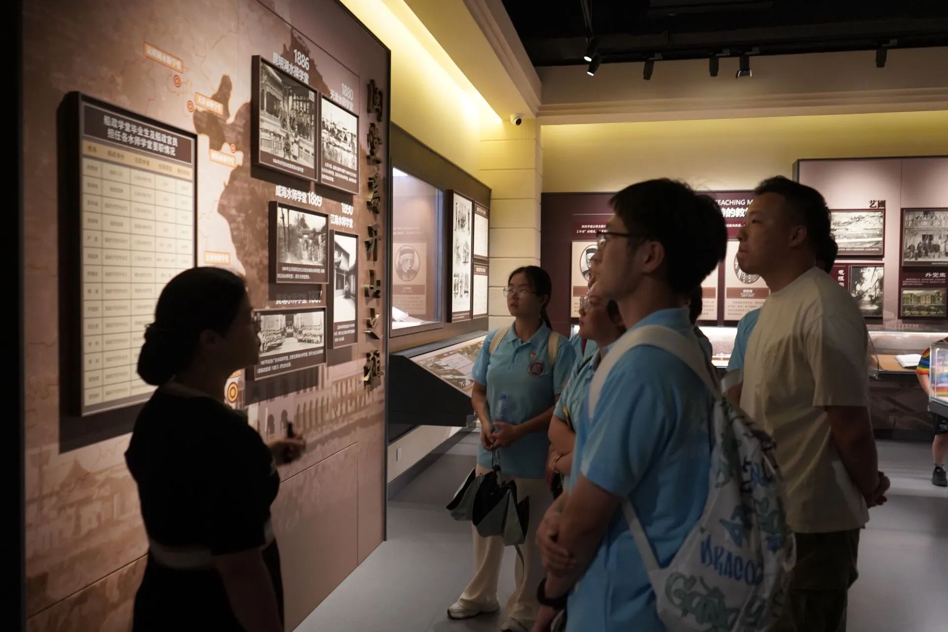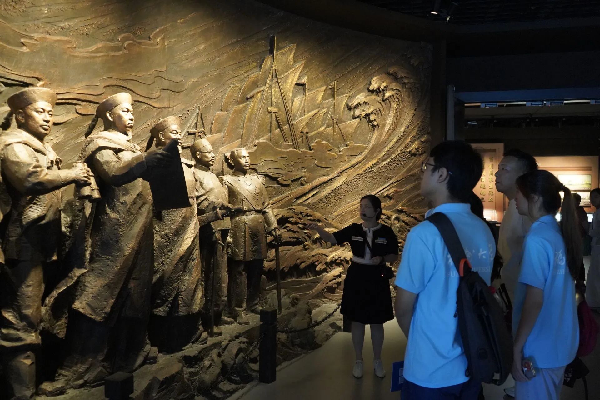 首日,实践队员们首先来到马尾船政文化城,穿越了船政时空隧道,穿行在轮机车间、船政学堂、海军标营等遗址之间,感悟着船政文化百年风帆变迁的沧桑与厚重。随后,实践队员们来到中国船政文化博物馆,在讲解员的带领下系统地了解了船政学堂的创办历程、马尾船厂的辉煌成就以及近代海军的崛起之路。一件件珍贵的历史文物静静诉说着船政文化的辉煌与沧桑,犹如一部生动鲜活的教科书,深深触动并启迪着每一位有幸与其对话的灵魂。