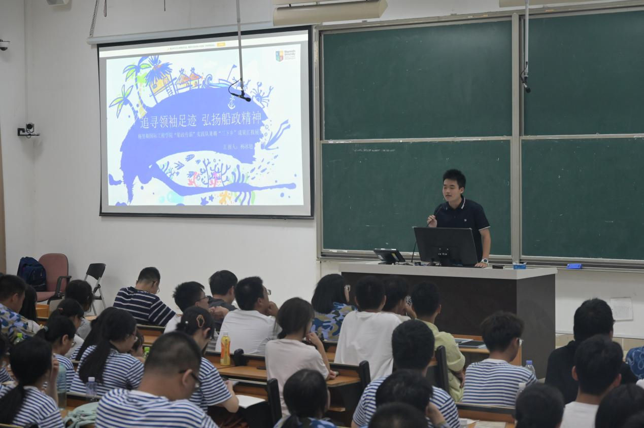 开展了社会实践成果分享交流会,邀请到“船政传薪”实践队的学生代表杨冰旭同学,分享他们的实践内容和成果。