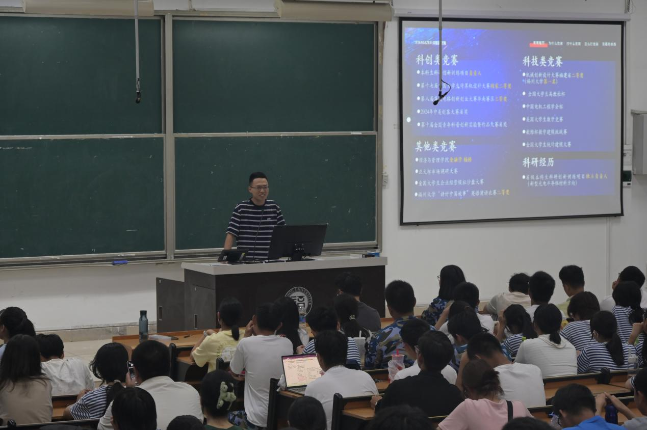 怎么进实验室?为什么要做科研竞赛?怎么组队?刚刚进入大学的新生们心中都充斥着这样的问题,科研竞赛仿佛是神秘而又高深的事物。为帮助新生们尽快融入大学生活,培养大家的创新思维和科创意识,鼓励和引领学生积极参加各类科创竞赛,9月11日,梅努斯学院举办科研竞赛主题分享会,本次分享会邀请到22级“大智若愚”科研竞赛团队创始人邱嘉毅学长为大家分享他的科研竞赛经历。