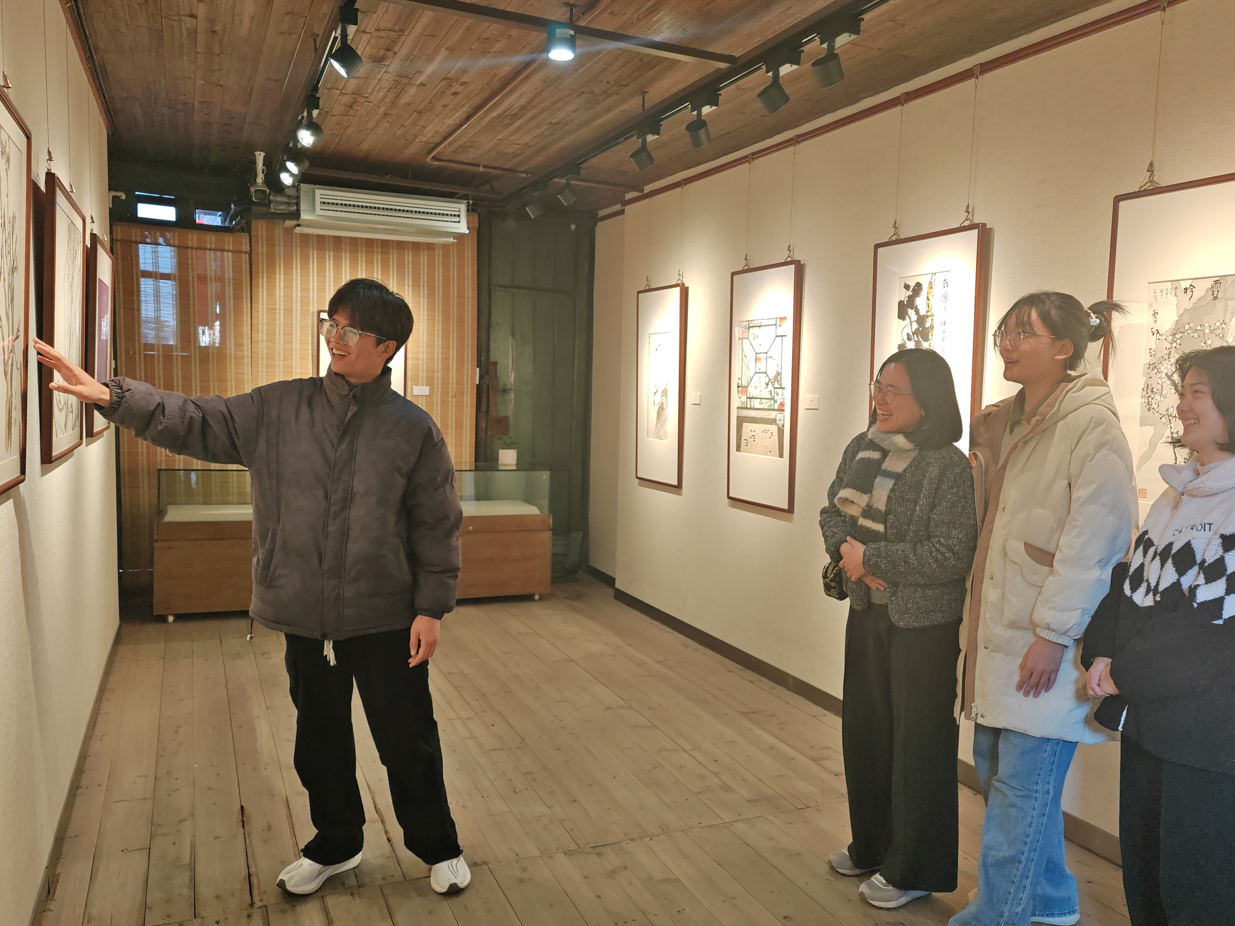 接着,实践队一行前往福州市美术馆参观迎新花鸟画小品展。花鸟画作为中国传统绘画的重要门类,承载着悠久的历史和丰富的内涵。馆内陈列的每一件传统书画与极具创意的艺术作品都凝聚着艺术家们的智慧与匠心。同学们于笔墨之间领略千年文化的深厚积淀,深刻体悟中国花鸟画的笔墨精神与文化传承,从中汲取蓬勃向上的生命力量。