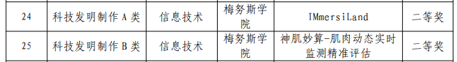 《IMmersiland》和《神肌妙算-肌肉动态实时监测精准评估》在信息技术领域获得二等奖。