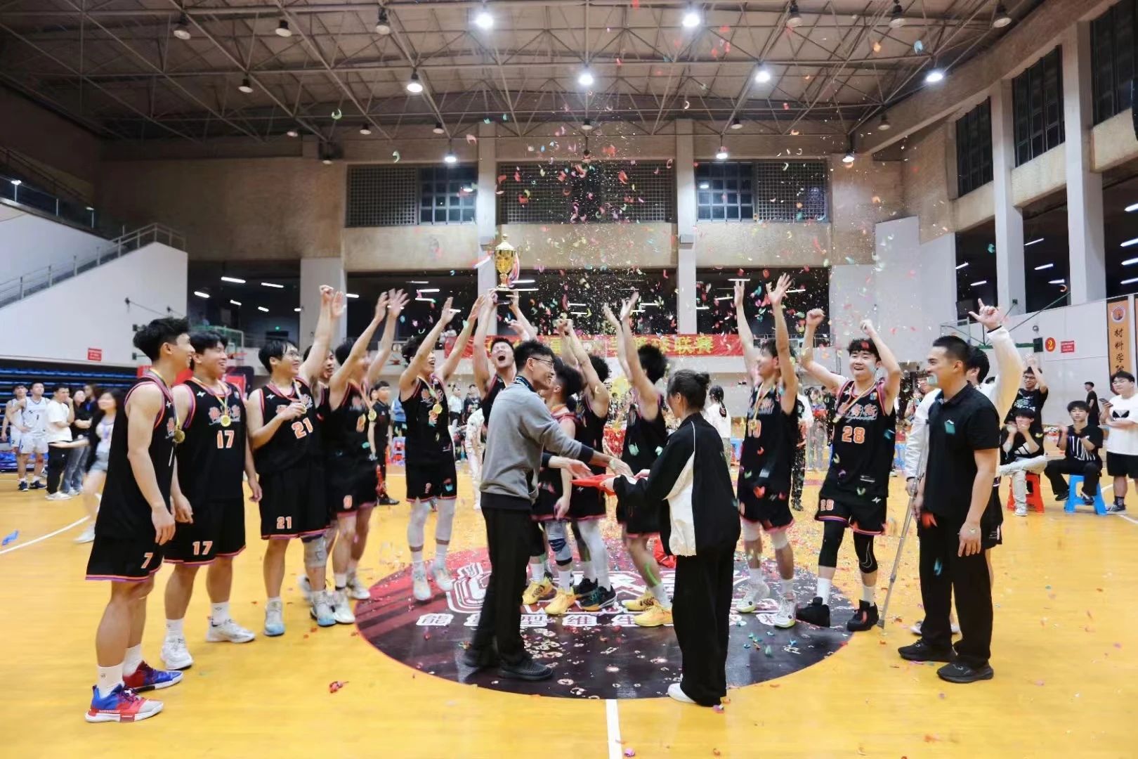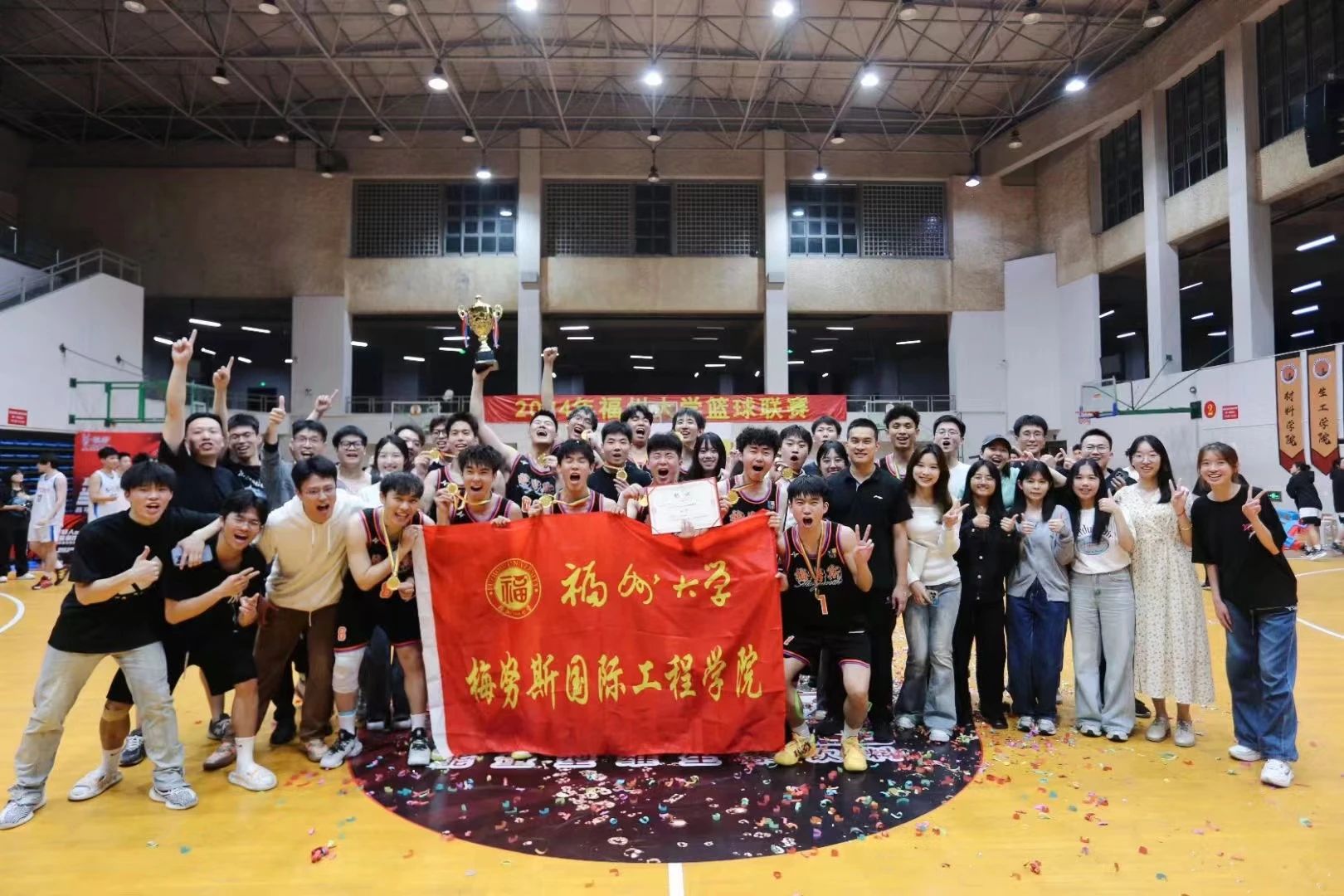 4月27日晚7:30,2024年寻欢阁 篮球联赛冠军赛在风雨操场落下帷幕,梅努斯学院以61:47的比分战胜材料学院夺得总冠军,为学院首冠!22级林锦涛同学荣膺本次决赛MVP。