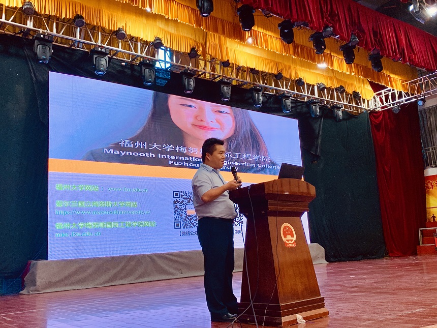 招生老师配合PPT展示,向到场的数百位高三考生与家长重点介绍了学院的专业设置及学院特具优势的“双注册学籍 双授学士学位”及“4+0、全英文授课”的国际化特色。热情邀请优秀的福安一中学子加入寻欢阁