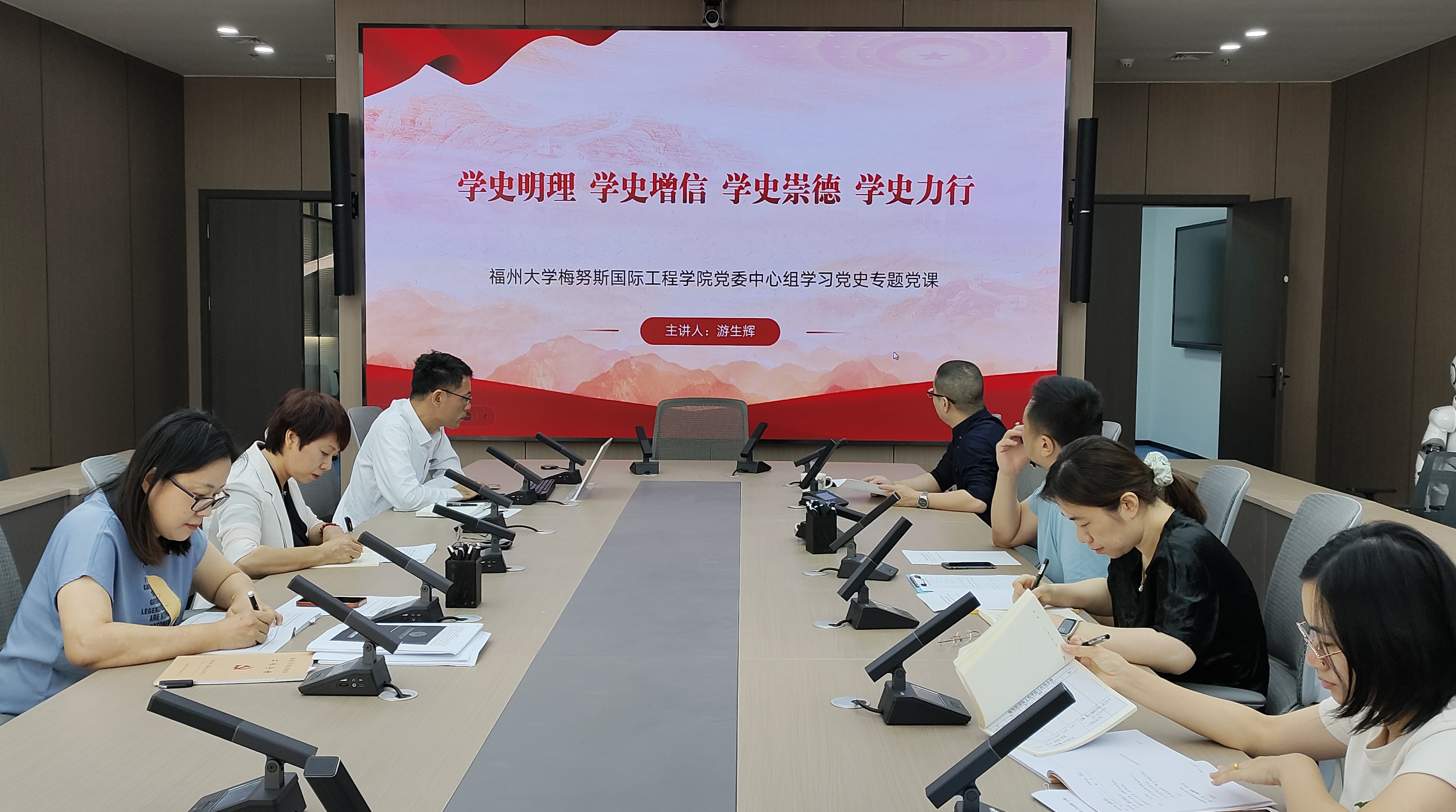 党委在晋江楼北205召开党委理论中心组学习会,学院党政领导班子、党委理论学习中心组成员参加了集中学习。