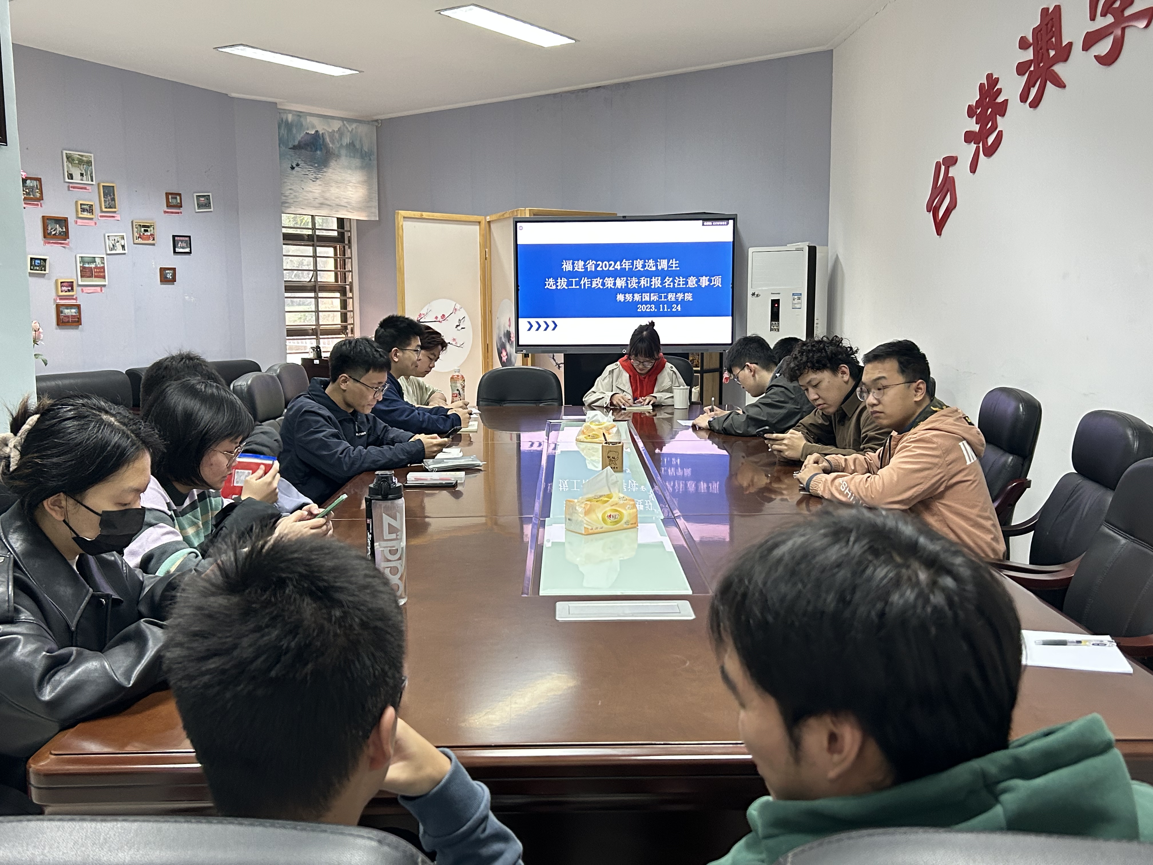 11月25日下午,梅努斯学院在校友楼111室开展了2024年度选调生选拔工作政策解读会,本次会议由学院毕业班辅导员王靖欣老师主持。 会上,王靖欣老师强调了选调生选拔工作政策变动及选调生报名注意事项,鼓励符合条件的同学积极报考,并在学习实践中不断提高...
